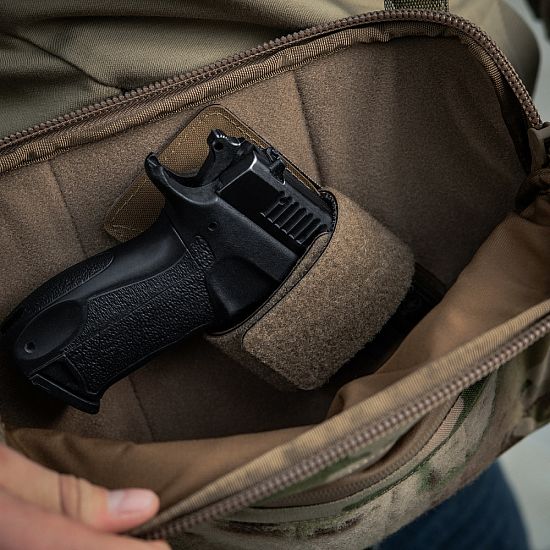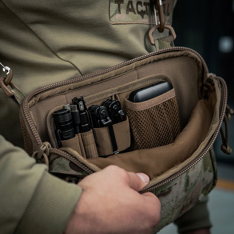 Компактний розмір (20 × 30 × 5 см) дозволяє носити сумку M-Tac зручно на корпусі — вона не заважає рухам і не займає багато місця.