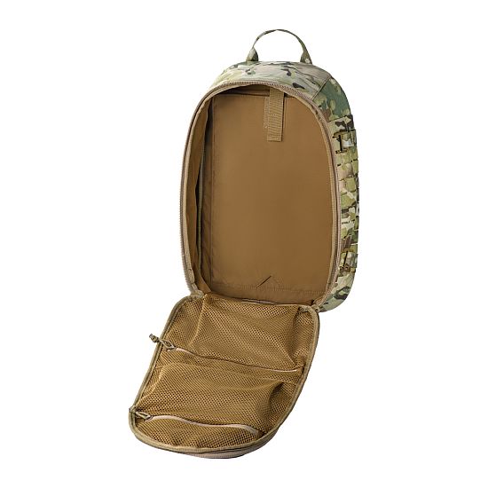 Головне відділення відкривається повністю, забезпечуючи швидкий доступ до вмісту, а спеціальні стропи-фіксатори дозволяють обмежити розкривання та користуватись рюкзаком зверху, як класичним мішком. Усередині передбачено відсік для питної системи, а на клапані розміщені дві сітчасті кишені для EDC-набору чи дрібного спорядження.