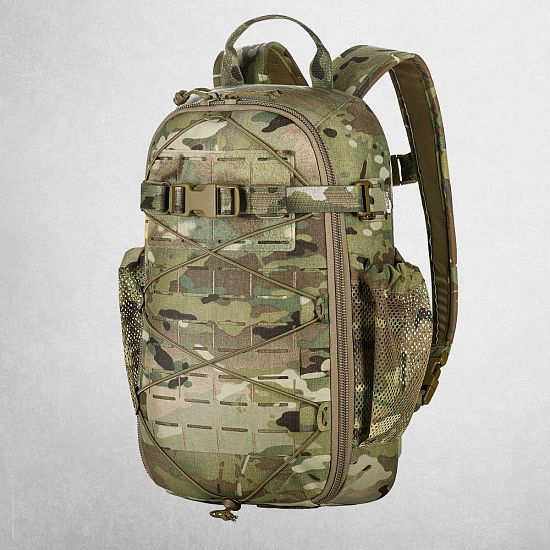 Основне відділення відкривається за принципом валізи, що дозволяє швидко організувати та дістати необхідні речі. Усередині передбачений відсік для питної системи з виходом під трубку гідратора, а на відкидному клапані розміщені дві сітчасті кишені для EDC-набору. Еластичні бокові кишені з матеріалу Flex зручні для перенесення пляшки з водою або інших дрібних предметів.